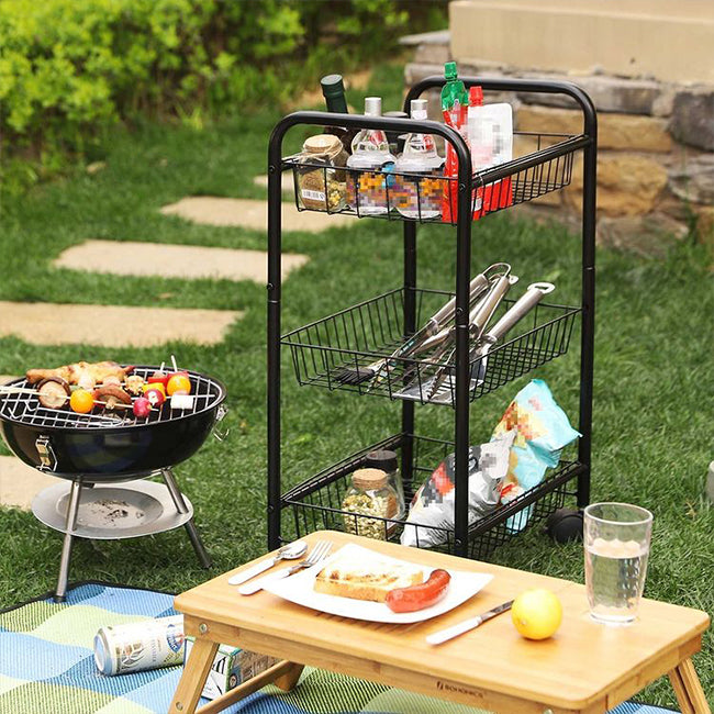 Invece di portarti dietro un tavolo per il tuo picnic, prendi in considerazione l'idea di portare con te un carrello e dei tavolini. Un carrello è perfetto per caricare le prelibatezze e le bevande e può essere facilmente spostato senza problemi. I tavolini permettono a tutti di mangiare dove vogliono senza essere troppo vicini gli uni agli altri. A noi sembra una soluzione vincente.