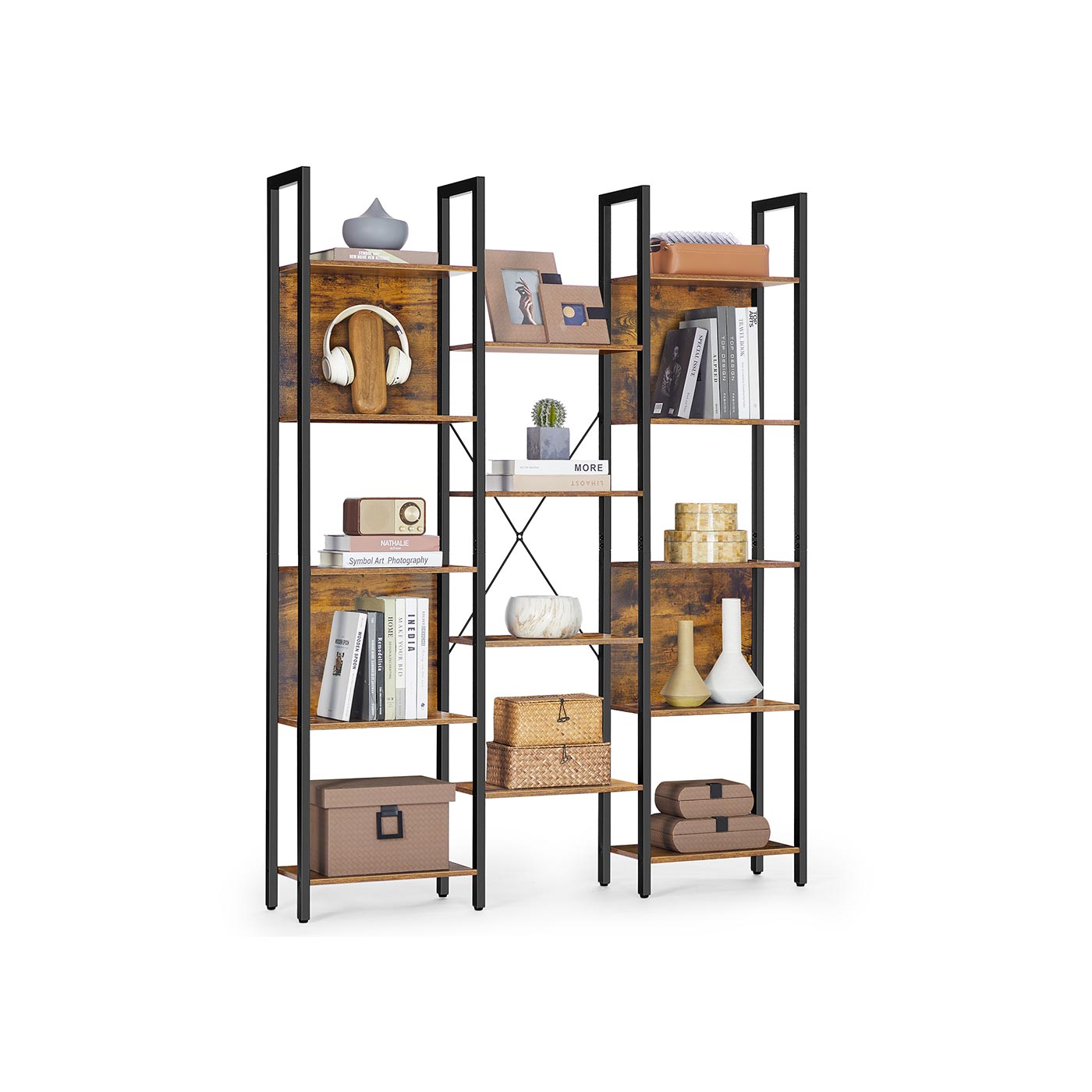 Libreria Scaffale Portaoggetti con 14 Ripiani in Metallo Marrone Vintage e Nero