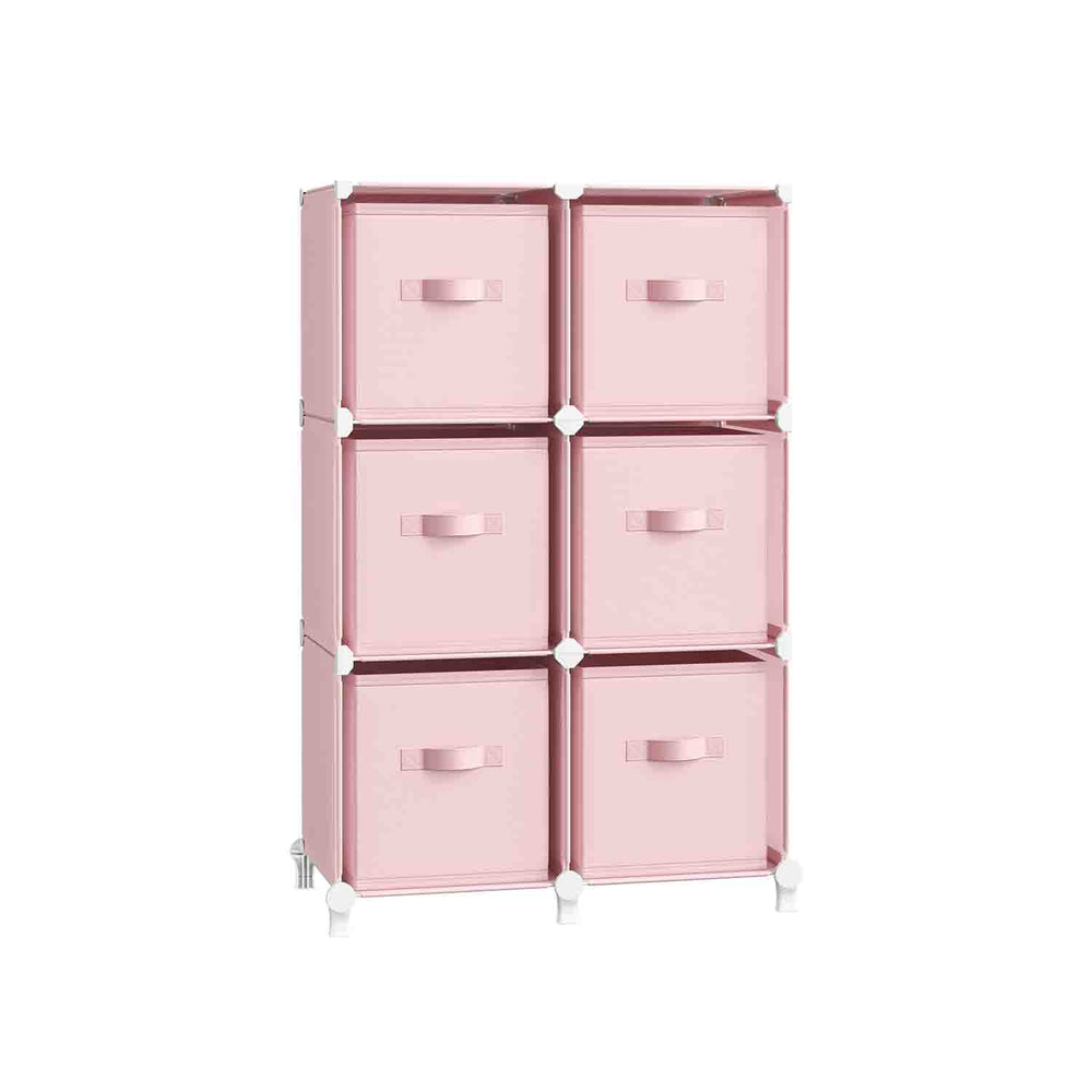 Scaffale Componibile a 6 Cubi con Scatole Rosa Gelatina