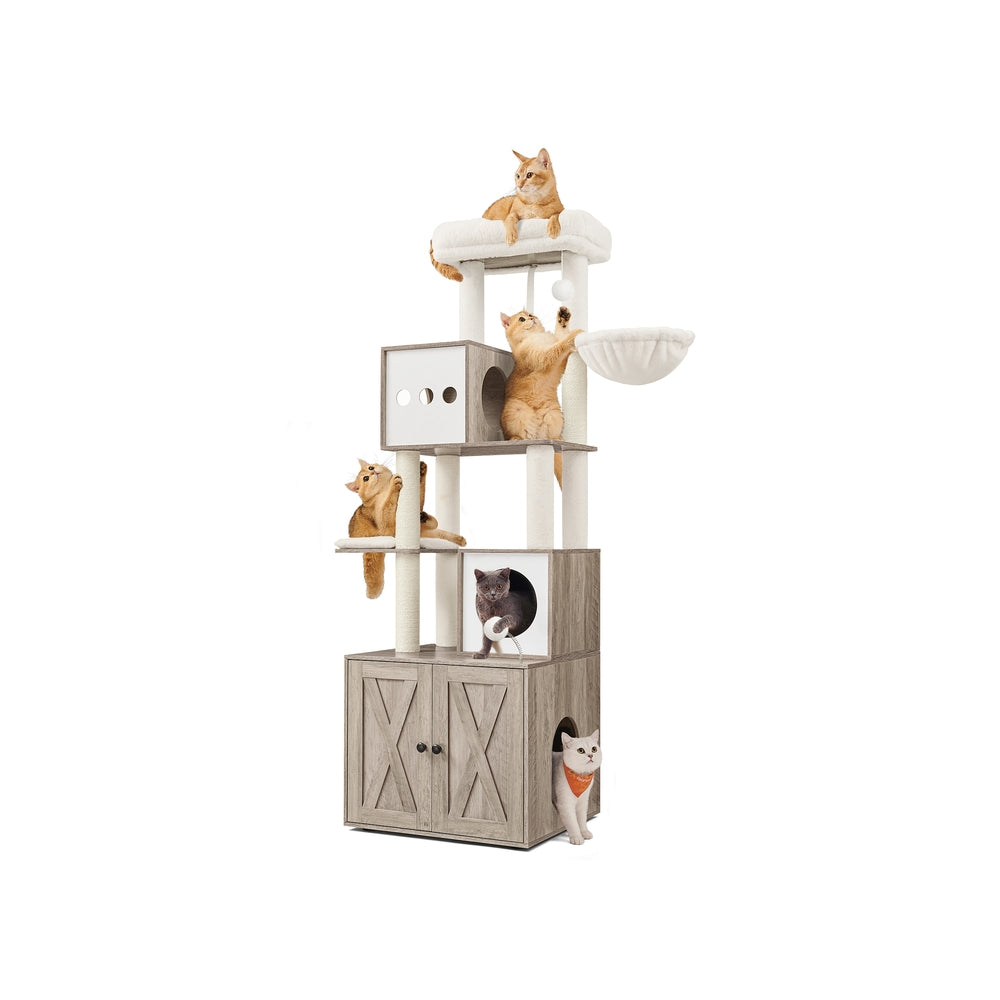 Albero per Gatti Moderno 178 cm con Graffiatoi Trespolo Cuscini Lavabili Greige