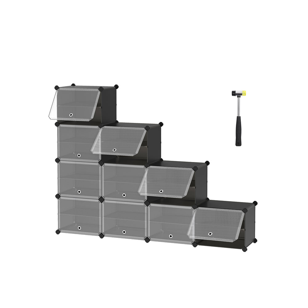 Scarpiera a 10 Scomparti di 30 x 40 x 30 cm con Sportello Telaio Acciaio Nero