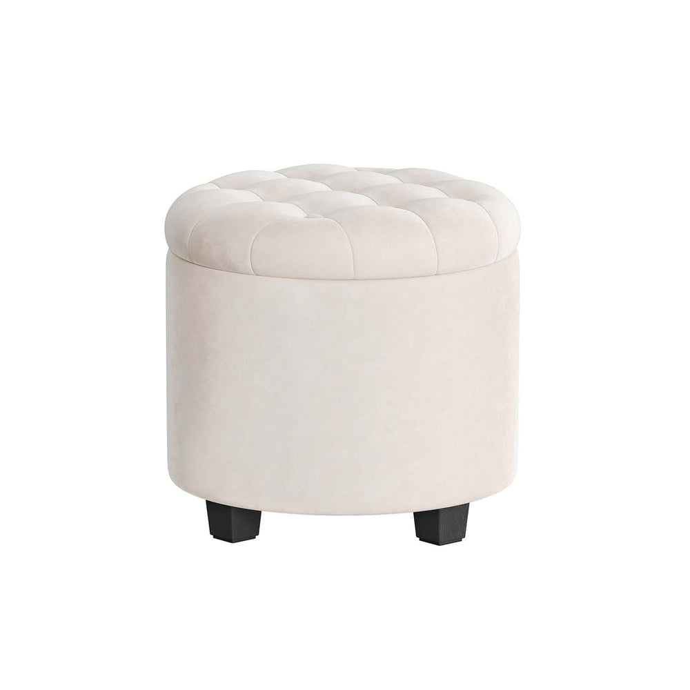 Cassapanca, 45 x 45 x 44,5 cm, Poggiapiedi con Gambe, Velluto, Portata Fino a 150 kg, per Soggiorno, Camera da Letto, Bianco Crema