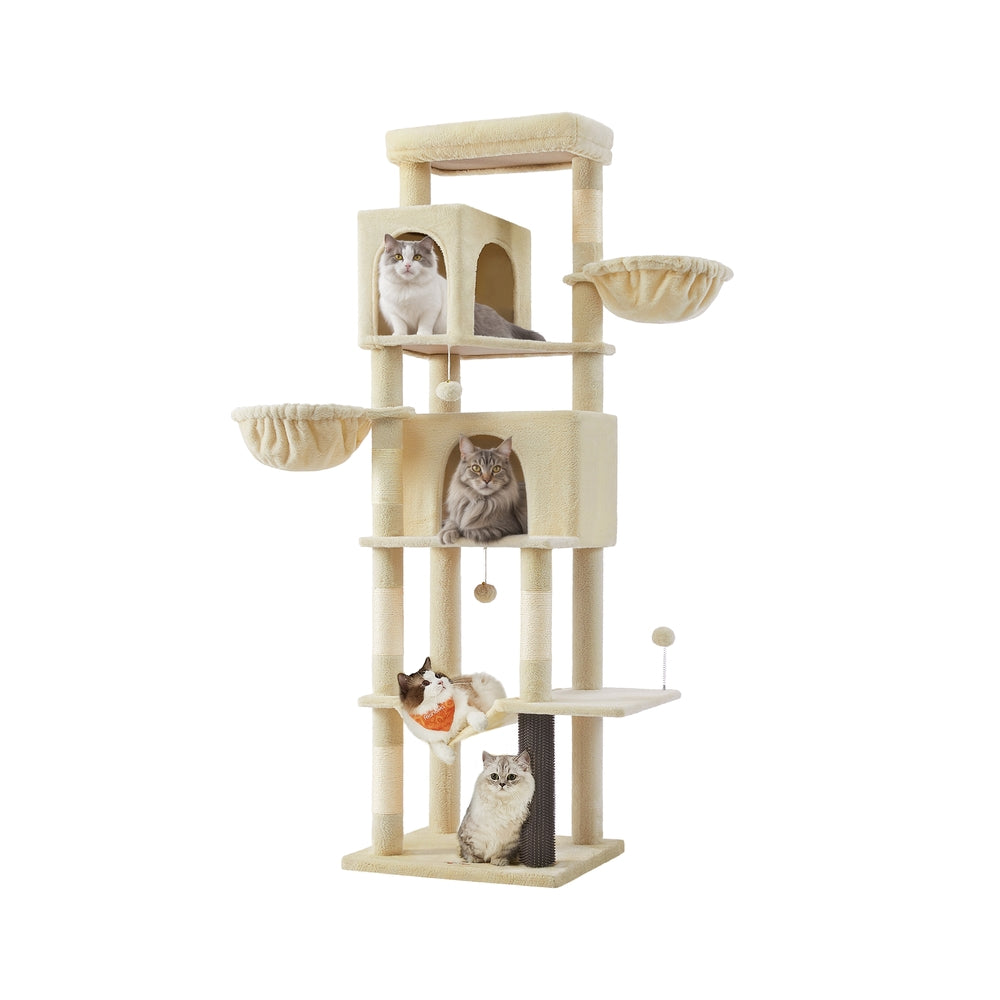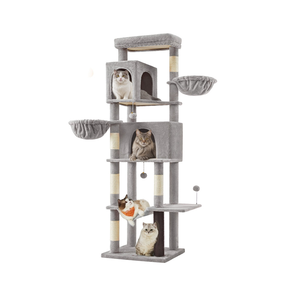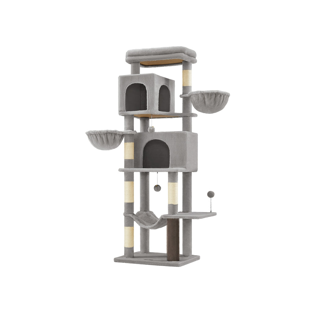 Albero per Gatti Grande Torre Tiragraffi Alto 175 cm Multilivelli Grigio Tortora