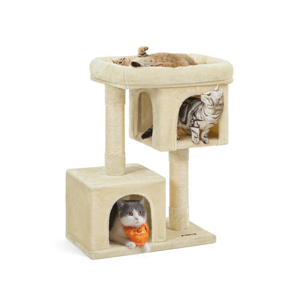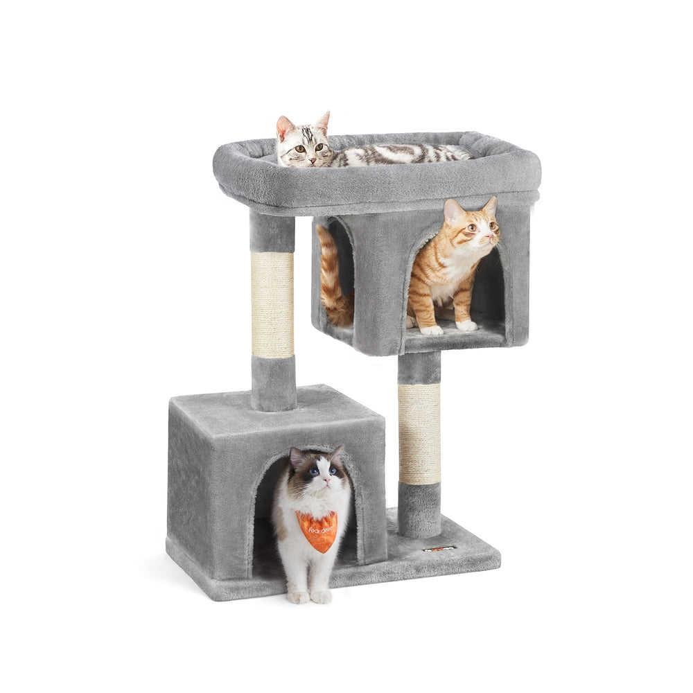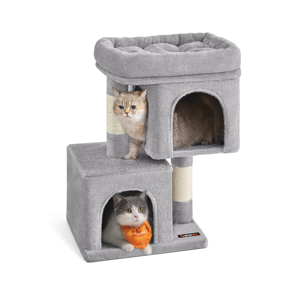 Albero per Gatti Grandi con 2 Grotte e 2 Pali Graffiatoio 84 cm Grigio Chiaro