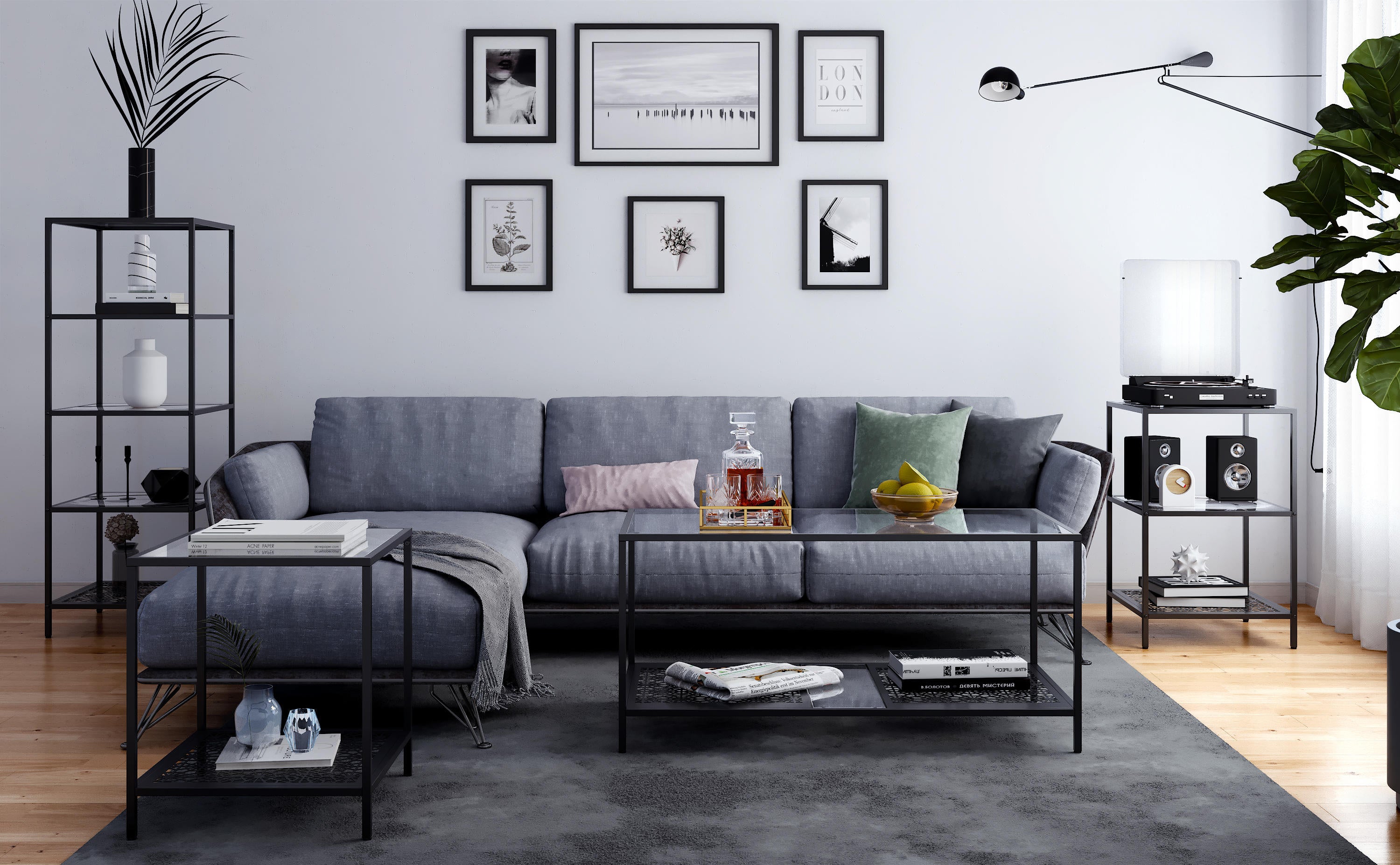 Organizza tutto fuori dalla vista ma al sicuro in pezzi eleganti e funzionali intorno alla TV e al divano.