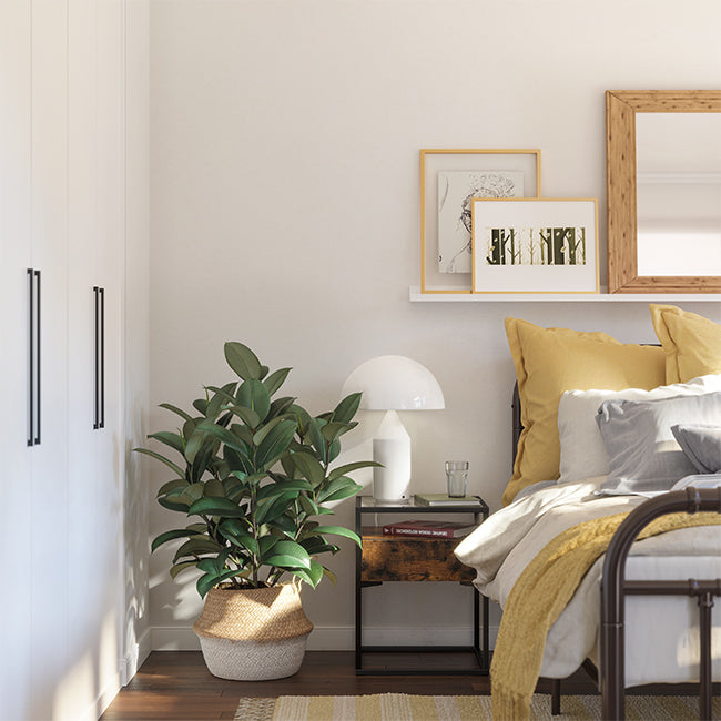 Con un comodino compatto dallo stile esclusivo e qualche decorazione,