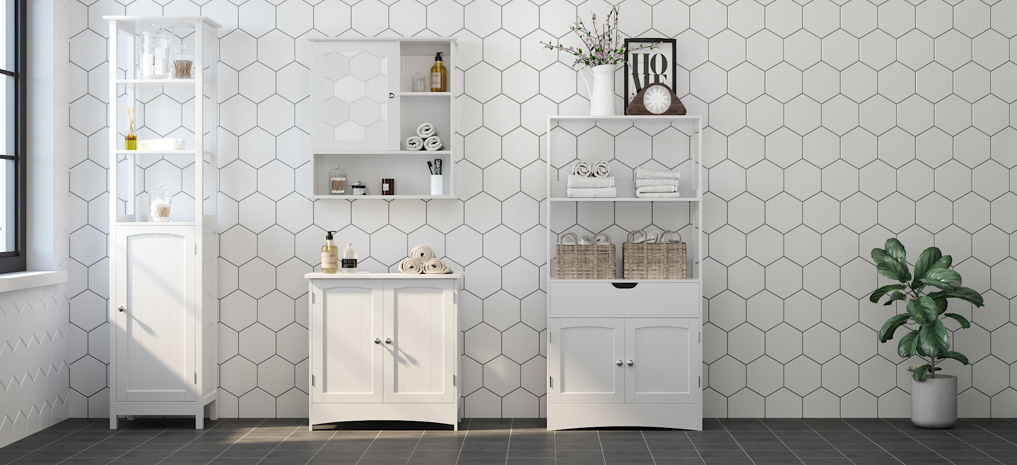 gli armadietti per il bagno di questa serie sembrano essere eccezionalmente in sintonia quando sono collocati nello stesso spazio.