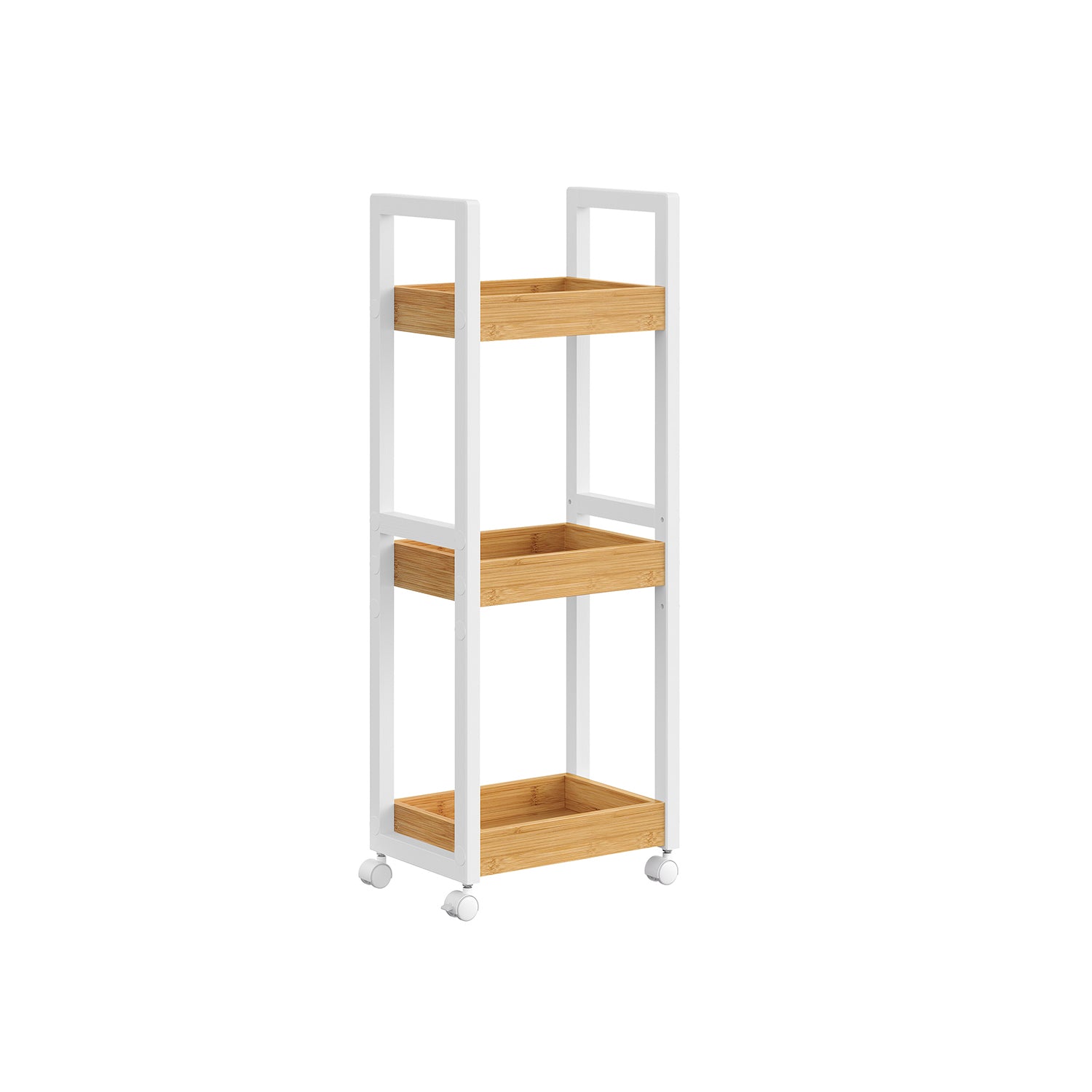 Carrellino Salvaspazio per Bagno a 3 Ripiani con Ruote Bianco e Naturale