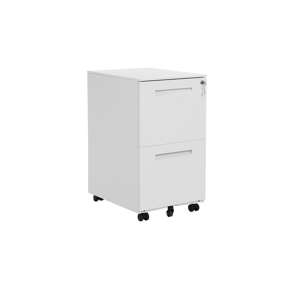 Cassettiera da Ufficio per Documenti con 2 Cassetti e Serratura Acciaio Bianco