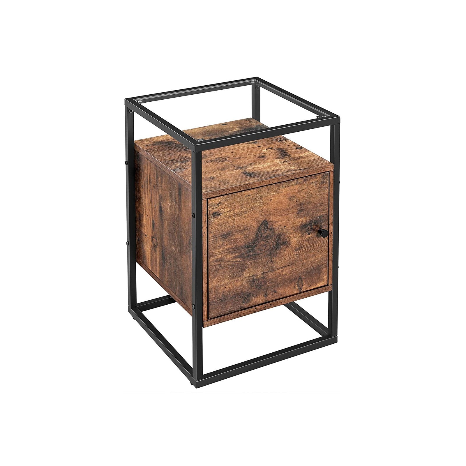 Tavolino in Vetro con Scomparto per Camera da Letto Soggiorno Marrone Vintage