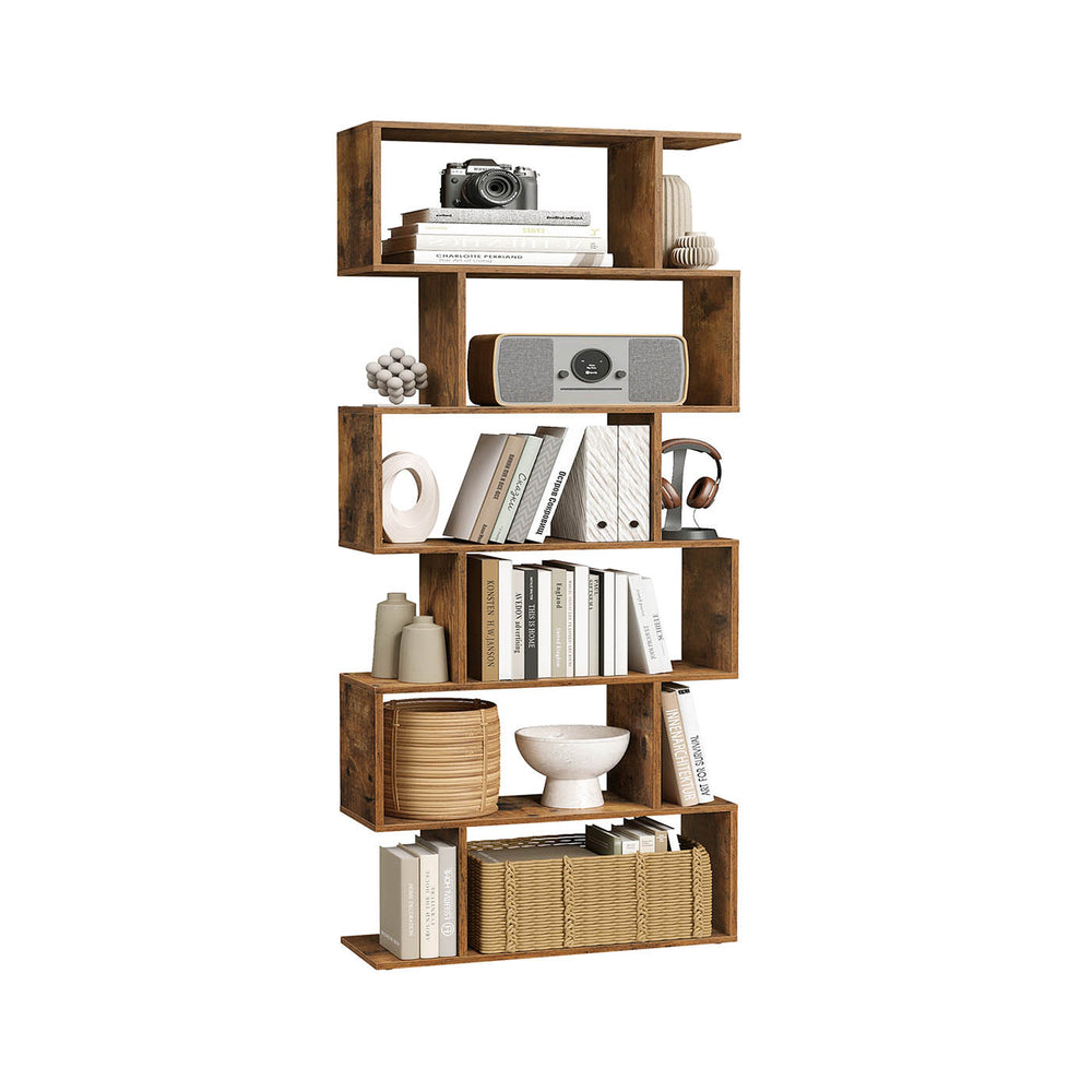 Libreria a 6 Livelli Divisorio per Stanza Autoportante Moderno Marrone Vintage